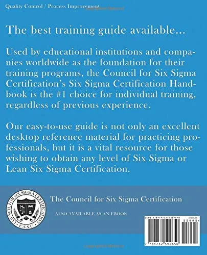 Since this handbook is commonly used by both The Council for Six Sigma Certification and many other training providers worldwide, you can be sure it covers the necessary Body of Knowledge and can be utilized during their open-book examination. The Council for Six Sigma Certification is a popular source for Six Sigma Certification as it is one of the largest accreditation bodies for Six Sigma and is one of the few Six Sigma Certification issuers whose certifications do not expire or require “renewals”.