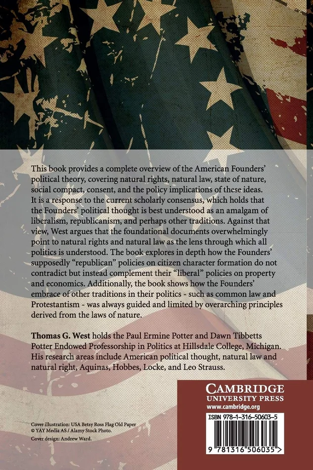 This book provides a complete overview of the American Founders’ political theory, covering natural rights, natural law, state of nature, social compact, consent, and the policy implications of these ideas. The book is intended as a response to the current scholarly consensus, which holds that the Founders’ political thought is best understood as an amalgam of liberalism, republicanism, and perhaps other traditions. West argues that, on the contrary, the foundational documents overwhelmingly point to natural rights as the lens through which all politics is understood. The book explores in depth how the Founders’ supposedly republican policies on citizen character formation do not contradict but instead complement their liberal policies on property and economics. Additionally, the book shows how the Founders’ embraced other traditions in their politics, such as common law and Protestantism.