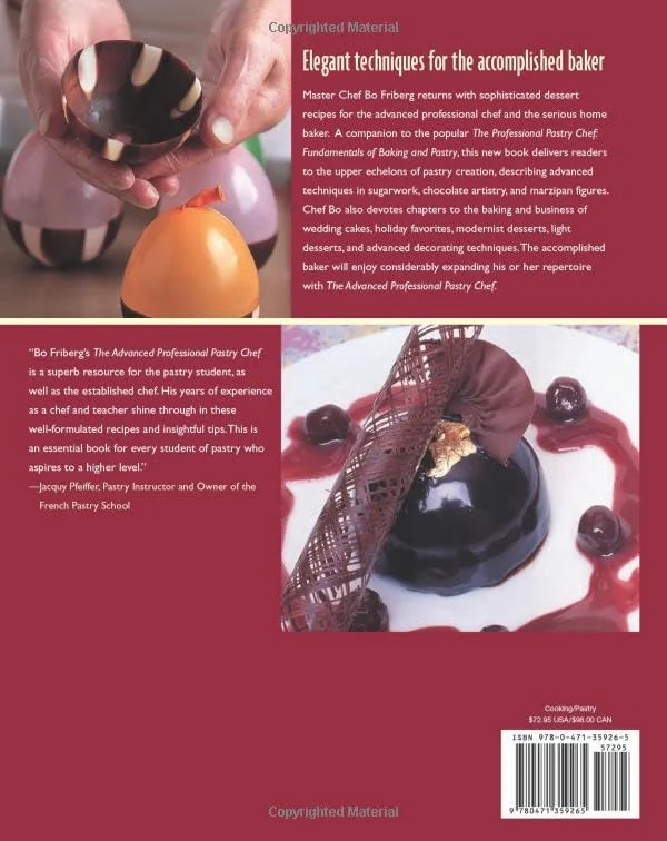 This new advanced volume, which expands Bo Friberg’s classic The Professional Pastry Chef, brings up-to-date coverage of advanced baking and pastry techniques to a new generation of pastry chefs and serious home bakers. Like its “sister” volume on the basics (The Professional Pastry Chef: Fundamentals of Baking and Pastry, 2002, 0-471-35925-4), this book, which covers such subjects as modernistic desserts, chocolate work, and sugar and marzipan creations, is designed to meet the needs of today’s pastry kitchen. This definitive reference features clear explanations, step-by-step how-to photos, and meticulous recipes – all presented in a lively, reader-friendly style.